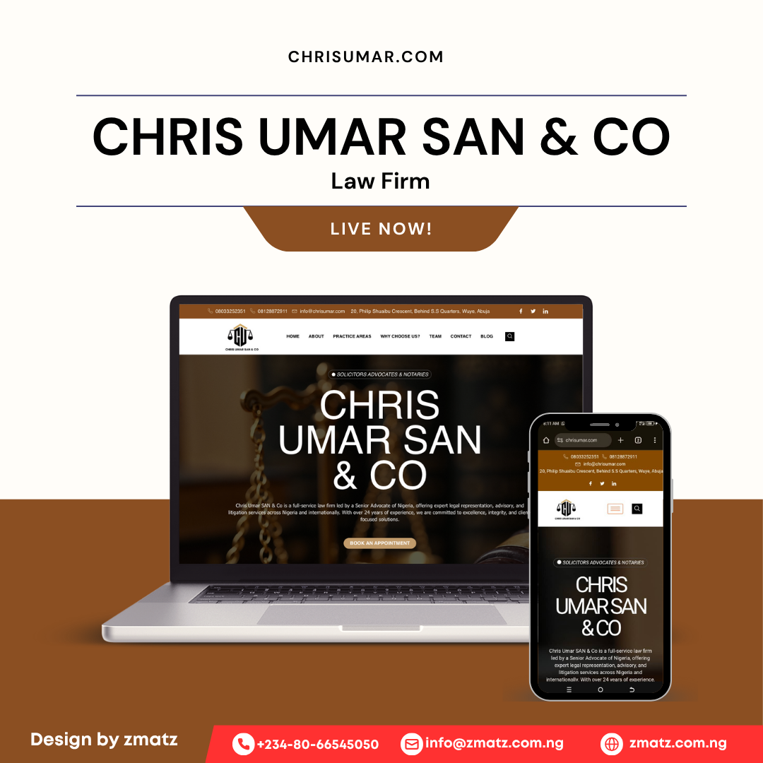Chris Umar SAN & Co is a full-service law firm led by a Senior Advocate of Nigeria, offering expert legal representation, advisory, and litigation services across Nigeria and internationally. With over 24 years of experience, we are committed to excellence, integrity, and client-focused solutions.